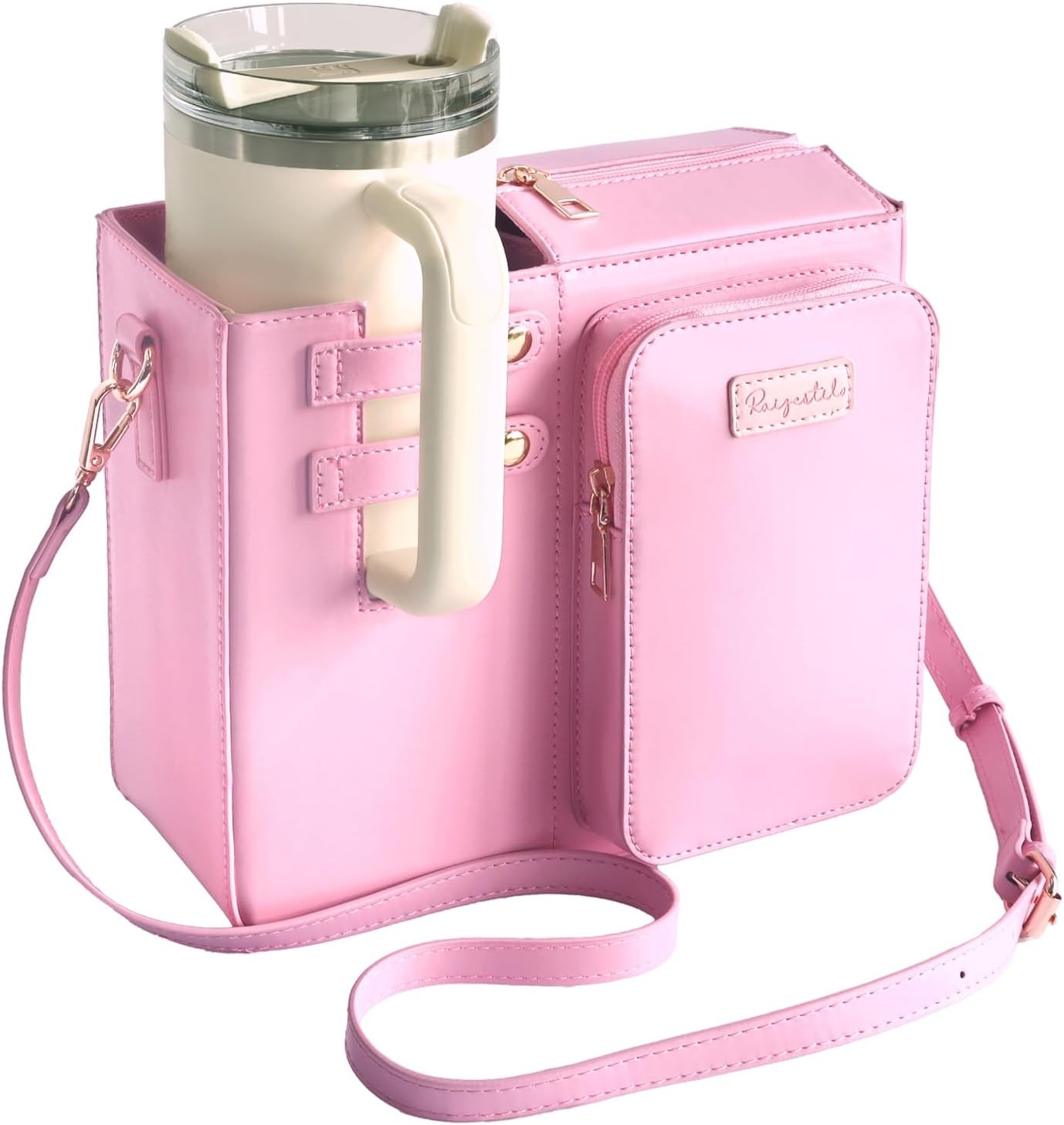 Raizestilo Crossbody Bag for Stanley Cup, Water Bottle Holder with Adjustable Shoulder Strap (Pink)