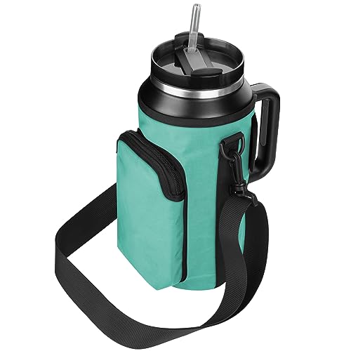 JEBEALUO Water Bottle Carrier Bag with Phone Pocket for Stanley Cup 40/30 oz, Water Bottle Holder with Adjustable Strap& Straw Cover, Stanley Cup Accessories (Mint Green)