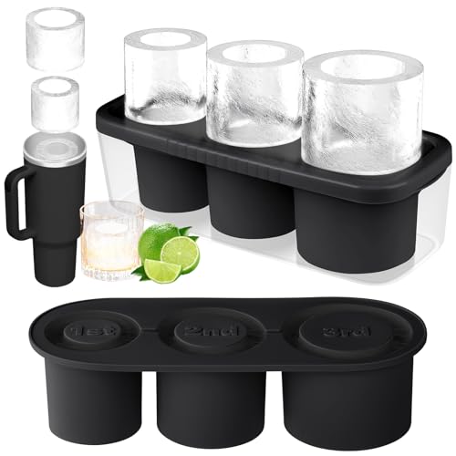 HOTUT Ice Cube Tray for Stanley Cups,Large Silicone Ice Cube Tray with Lid for Freeze,Cylinder Ice Maker for 20-40 oz Tumbler,Easy to Remove Ice Cube Tray for Freezer Cold Drink Juice Coffee (Black)