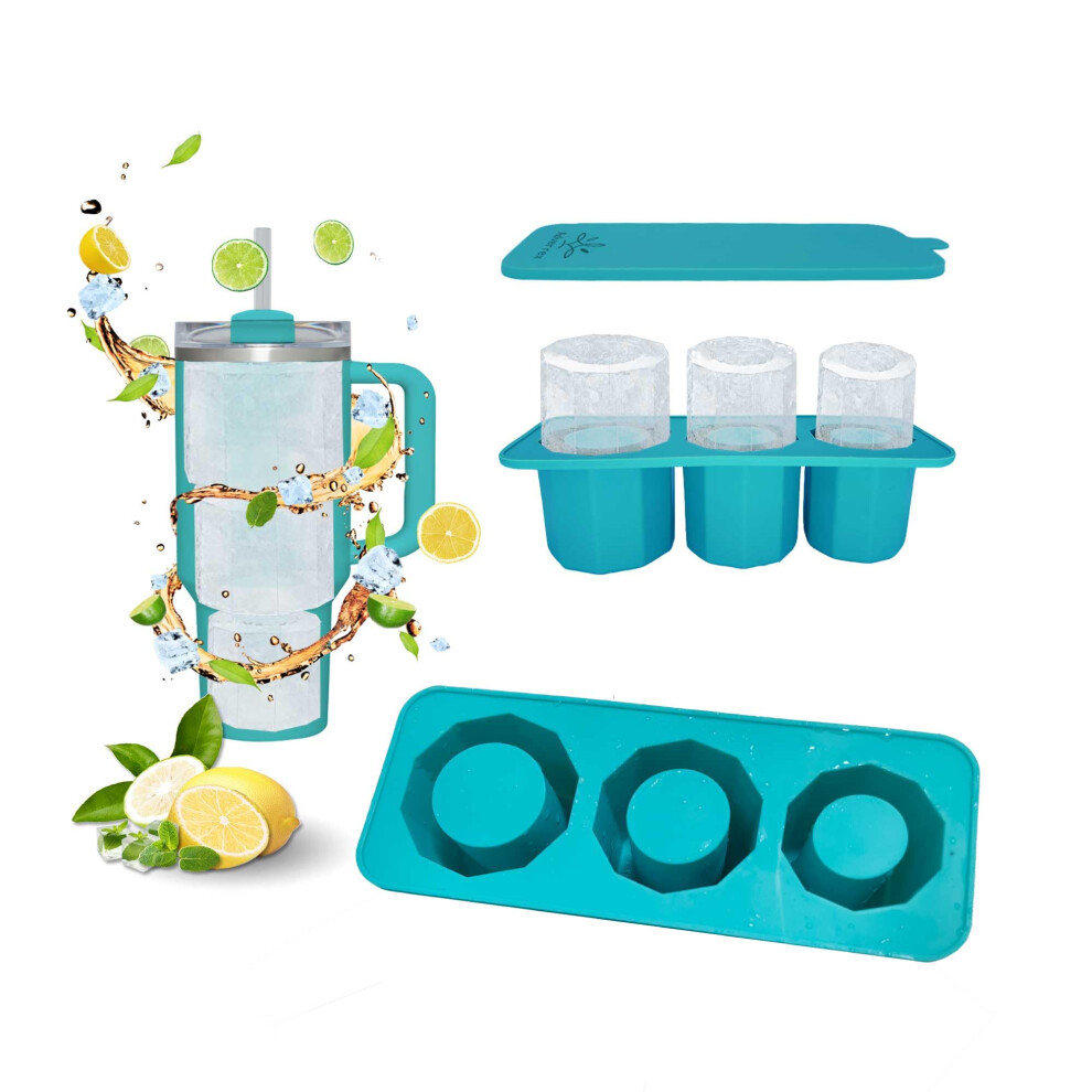 (Blue) 3Pcs/Set Food Grade Silicone Cylinder Ice Cube Mold with Lid for 24/30/40oz Stanley Cups (BPA Free,No FDA)