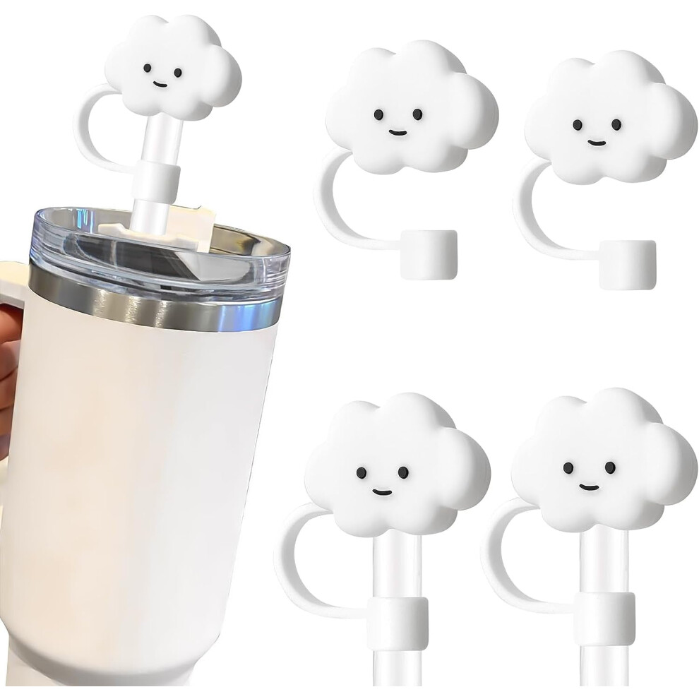 4 Pack Silicone Straw Covers for Stanley 40 Oz Cup, 10mm Cloud Shape Caps Compatible with Stanley Cups, Reusable Straw Protectors & Spill Stoppers