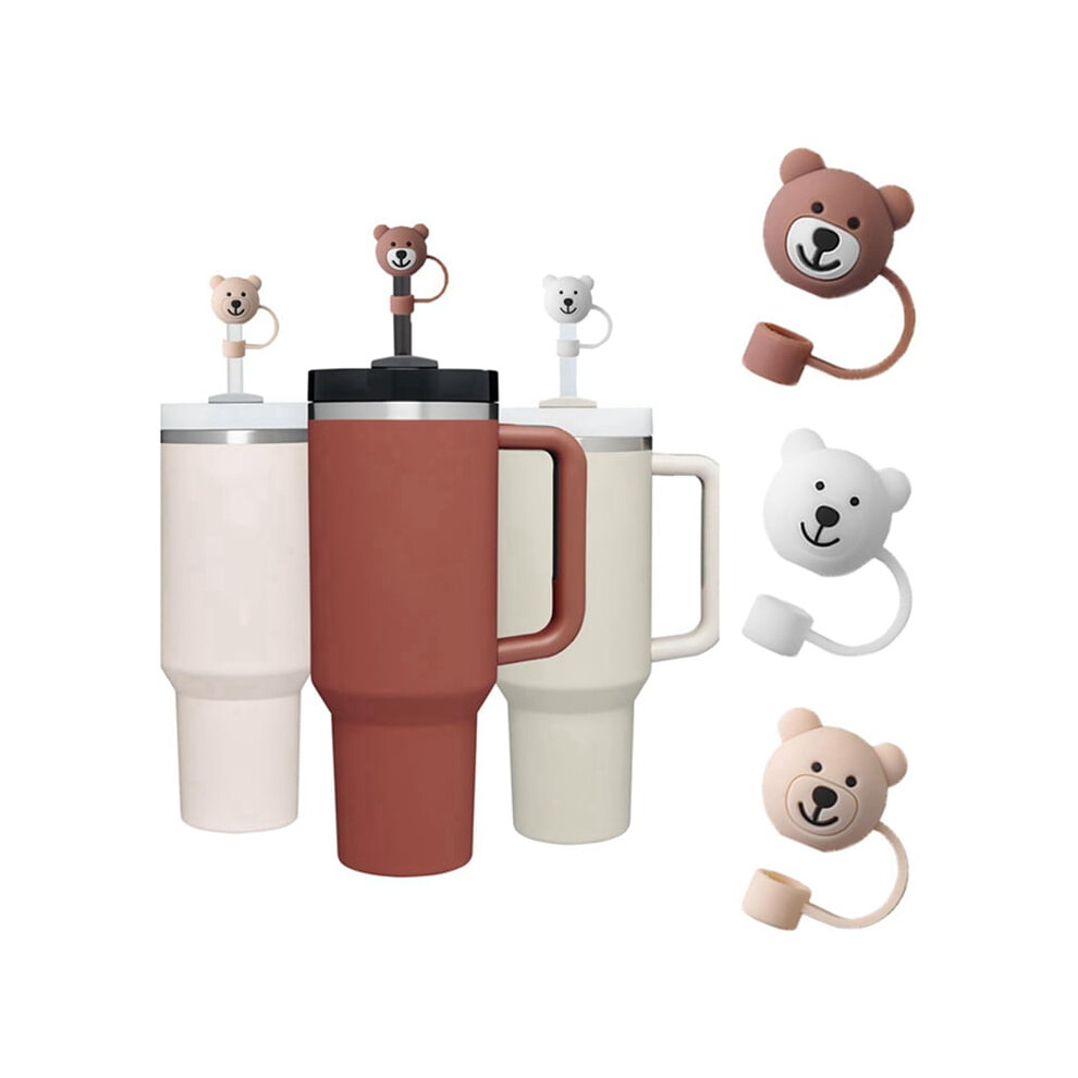3 Pack Straw Cover for Stanley Cups,Cute Bear Straw Protector Cover Compatible for Stanley 30&40oz Silicone Straw