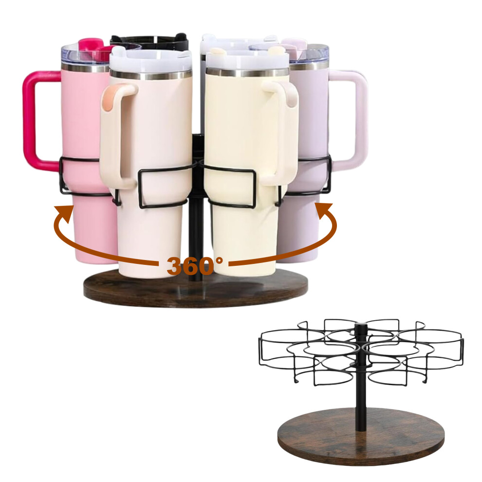 Elegant Water Bottle Organizer, Rotatable Design Tumbler Organizer, Stanley Cup Accessories 40 Oz Tumbler with Handle Holder for 6 Stanley Cups, Space