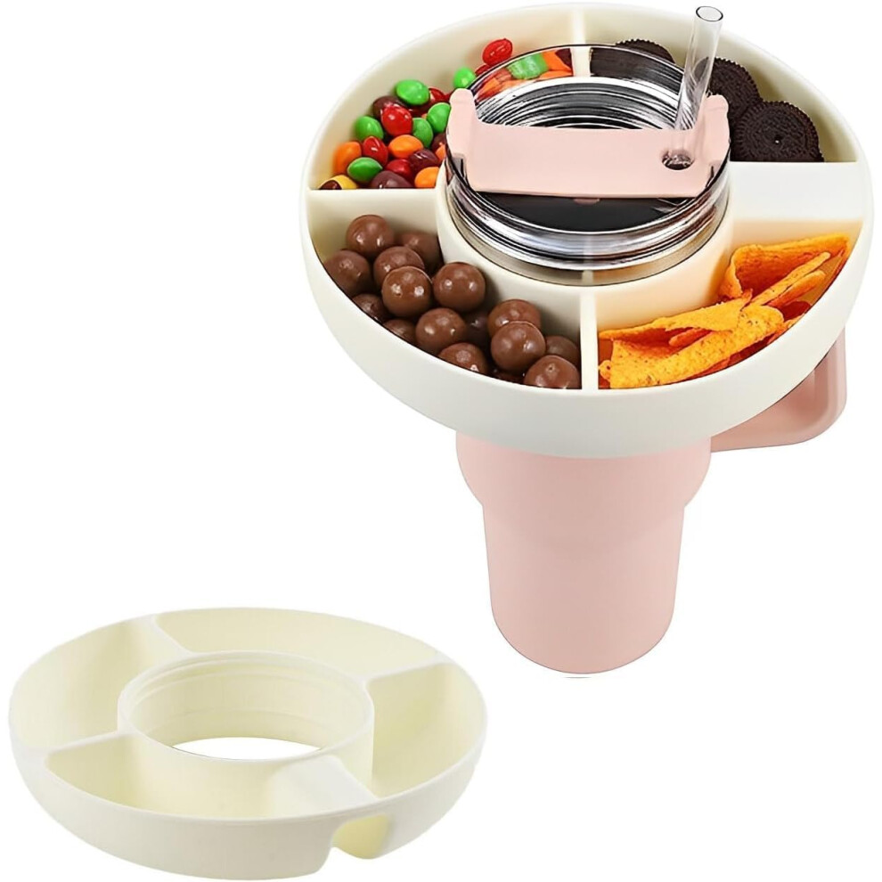 Snack Tray Silicone Snack Bowl for Stanley Cups with Handle, Triple Snack Holder, Beige Color, Compatible Accessories