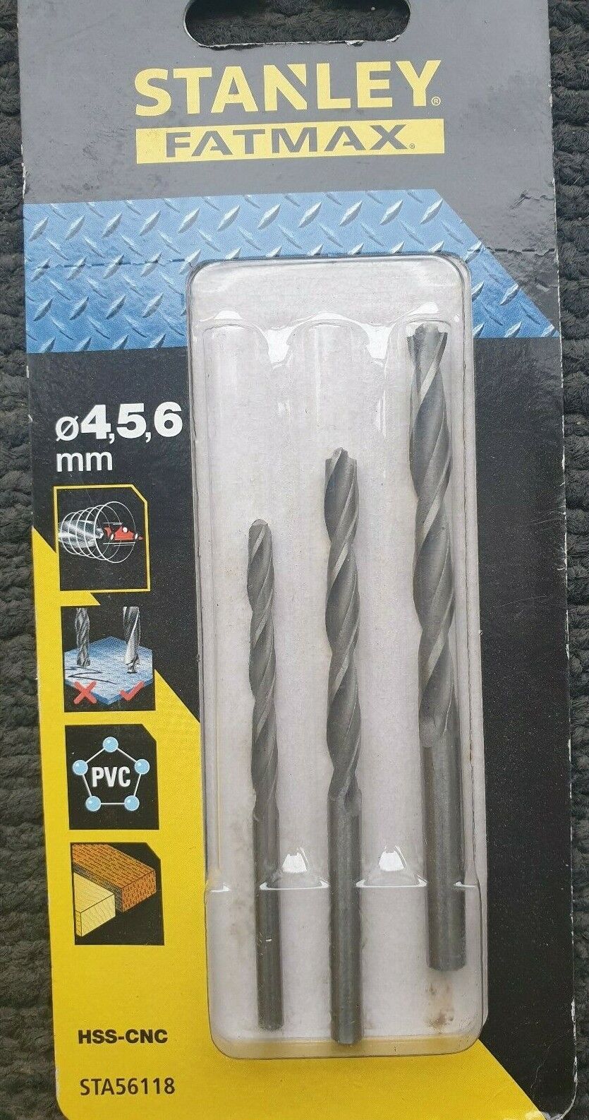 Stanley 3Pc Fatmax Drill Bit Set 4mm 5mm 6mm STA56118