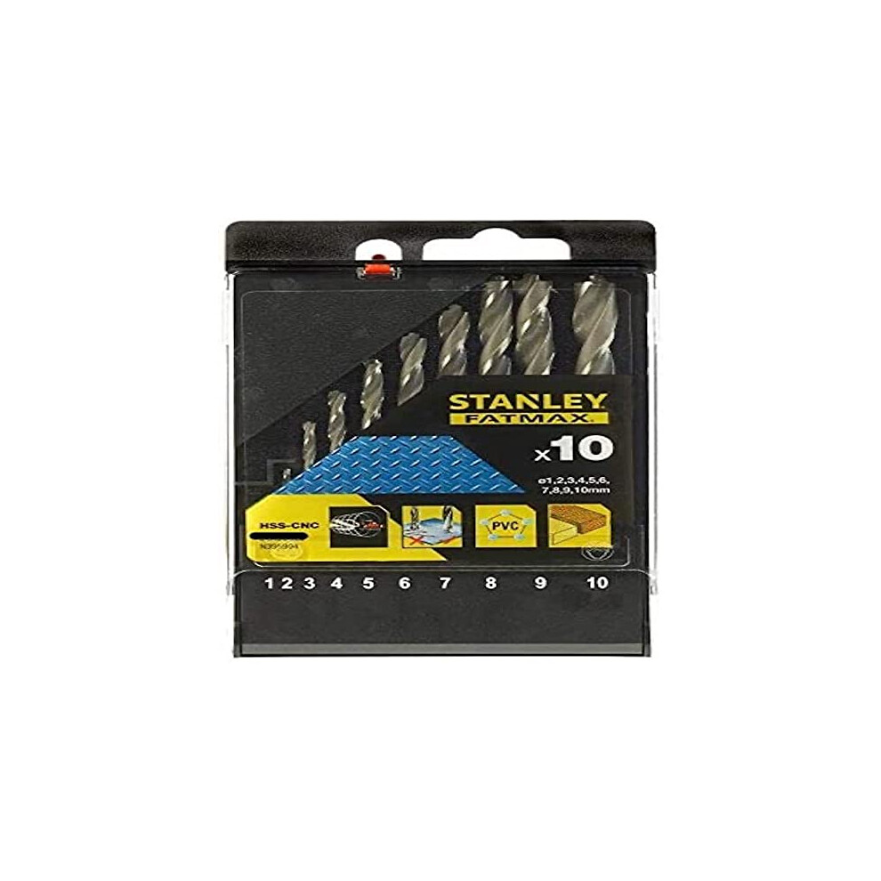 STANLEY Fatmax STA56043-QZ 10 Piece High Speed Steel Metal Drill Bit Set, Includes 1mm, 2mm, 3mm, 4mm, 5mm, 6mm, 7mm, 8mm, 9mm, 10mm