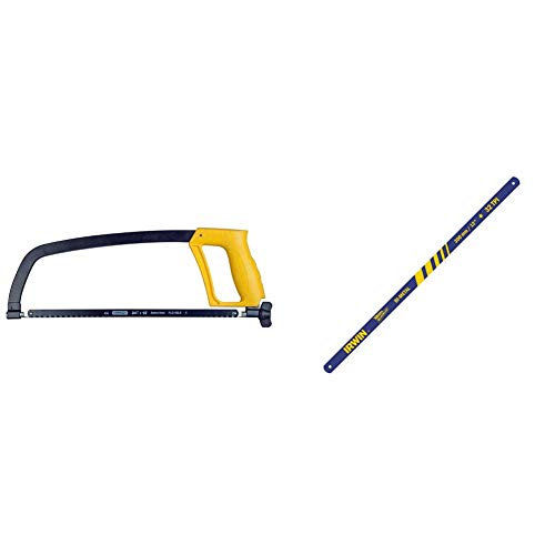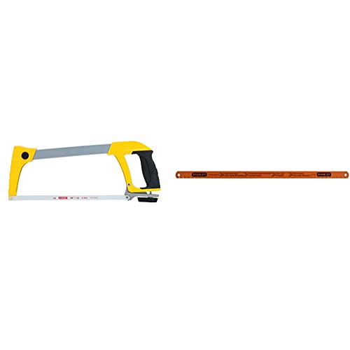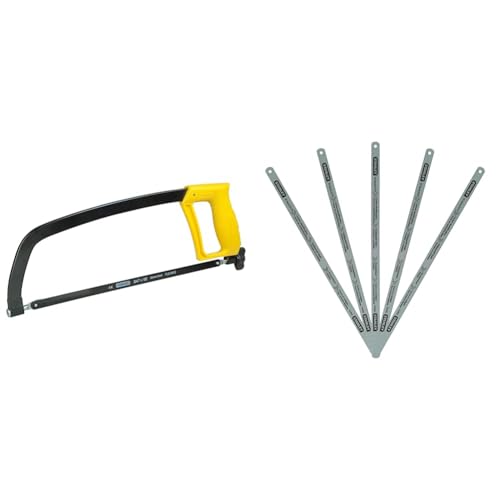 Stanley Pistol Grip Hacksaw 1 15 122 with Irwin 10504525 300mm/ 12-inch x 32tpi Bi-Metal Hacksaw Blades (Pack of 2)