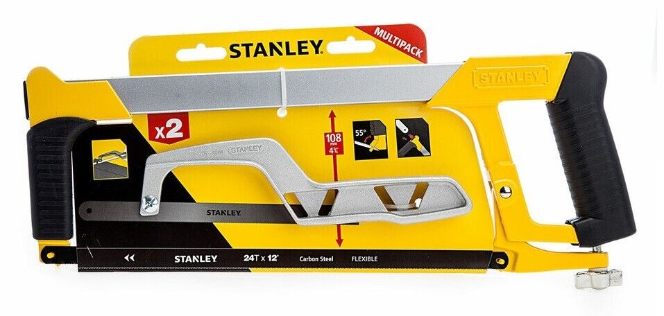 Stanley Dynagrip Heavy Duty Hacksaw 1 20 110 & High Speed Steel Molybdenium Hacksaw Blades (2) 0 15 906