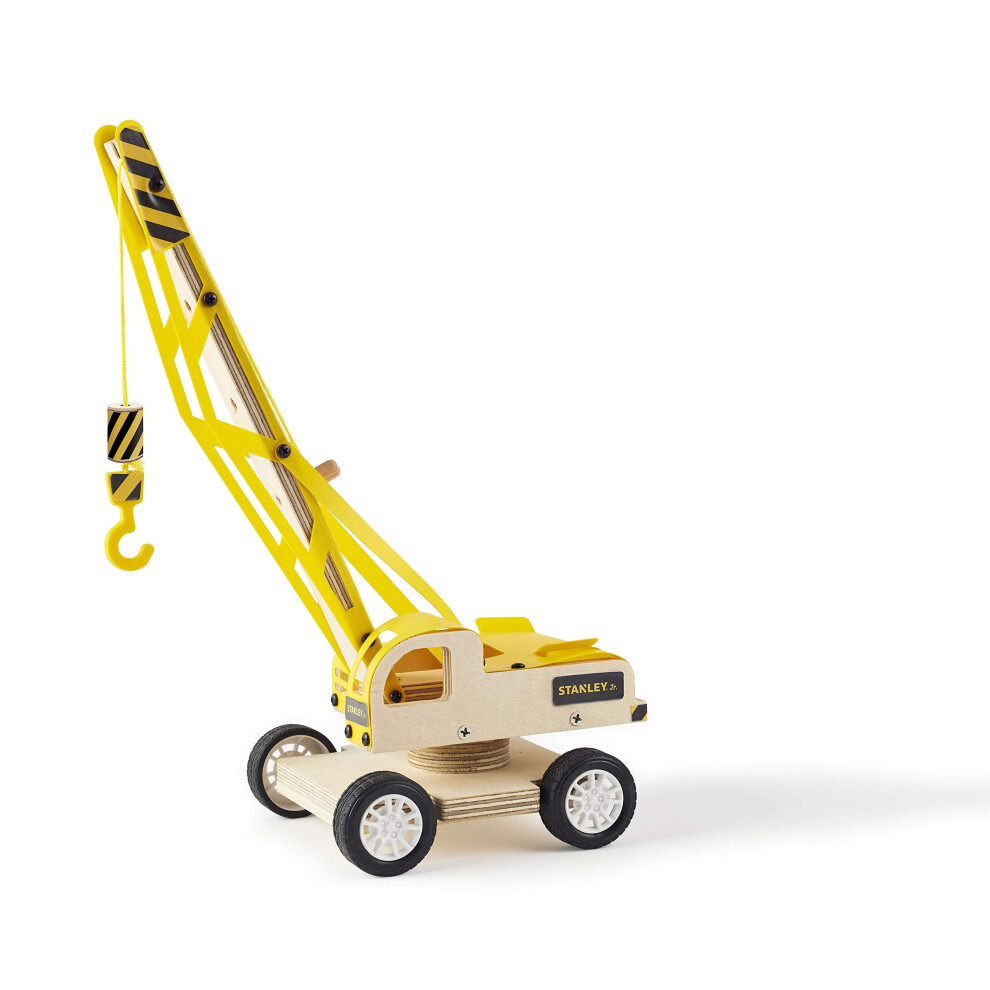 Stanley Jr. STANLEY Jr DIY Yellow Lifting Crane Kit for Kids - Easy Assembly Crane Building Kit - Wood Crane Toy Craft - Wood, Paint & Decals Included