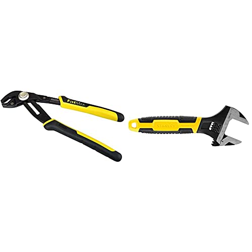 STANLEY 0-84-647 FATMAX Multigrip Groove Joint Pliers 8'', Black/Yellow & 090947 6in MaxSteel Adjustable Wrench