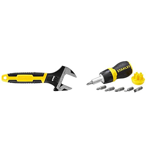 Stanley 090947 6in MaxSteel Adjustable Wrench & 066358 Multi-Bit Stubby Screwdriver