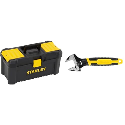 Stanley STST1-75517 Essential 16" Toolbox with Plastic Latches, Black/Yellow & MAXSTEEL Adjustable Wrench 30 x 200 mm Protective Phosphate Finish and Ergonomic Bi Material
