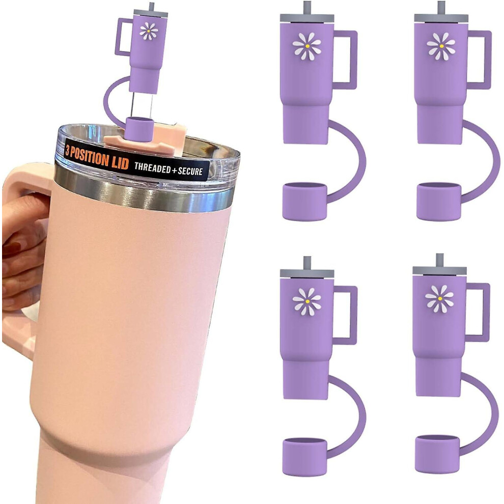 YISCOKO Stanley Cup Accessories Flower Straw Covers Toppers-4PCS Silicone Stanley Straw Topper,Straw Toppers,Straw Cover Cap for Stanley Cup 10mm 0.4