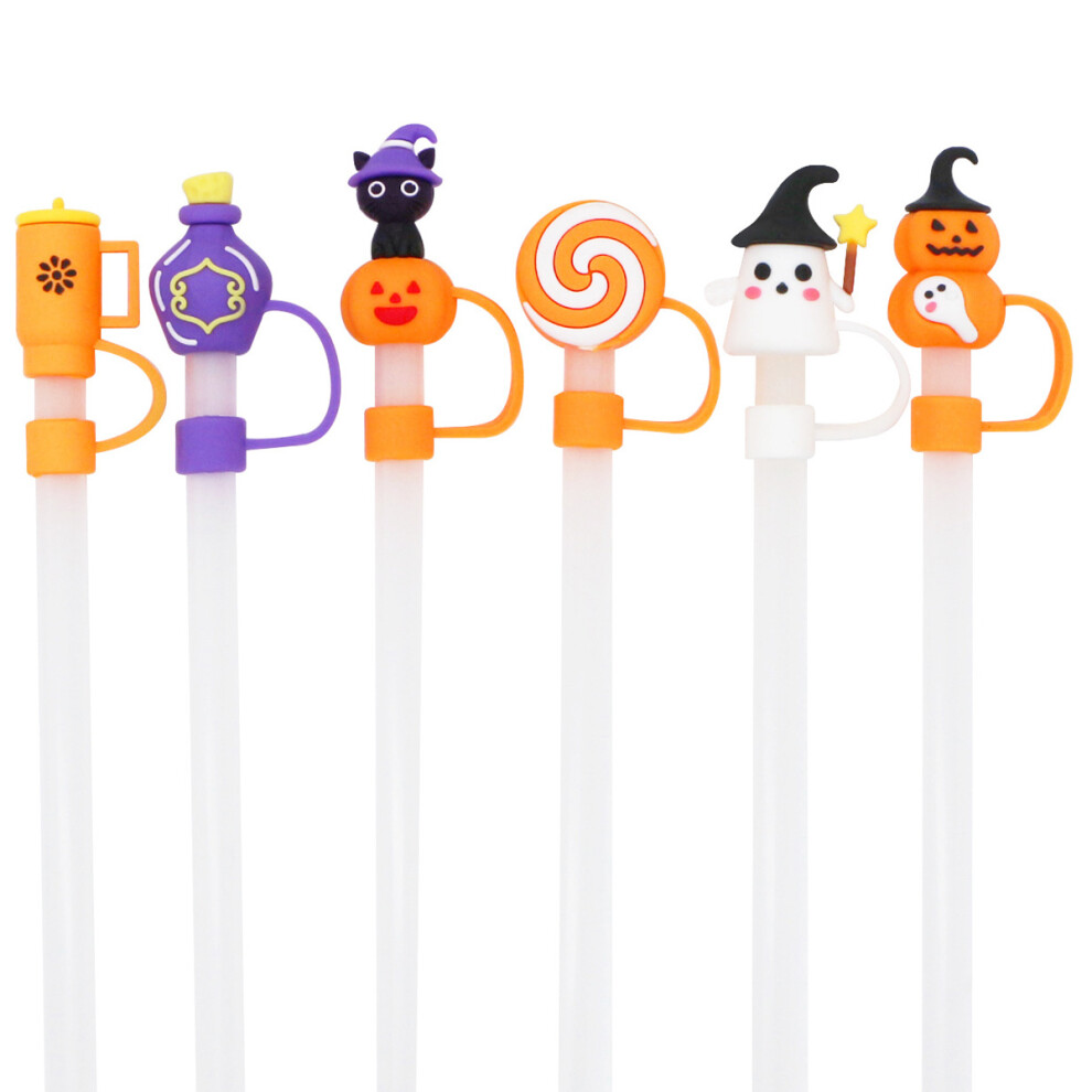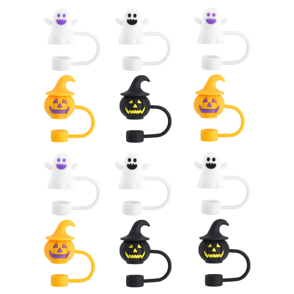 Perfect for Stanley Cup, Halloween Straw Cover, 12PCS Reusable Straw Tips Lids, Food-Grade Material Silicone Straw Topper, Easy to Use, Cute Patterns