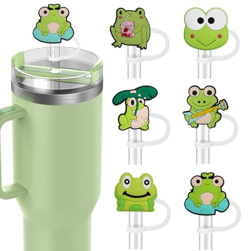 yomanta 6pcs Straw Cover for Stanley Cup for 10mm Dust-Proof Silicone Stanley Straw Topper Accessories, Reusable Straws Cover for Stanley 40/30 Oz Tumbler - Cute Frog