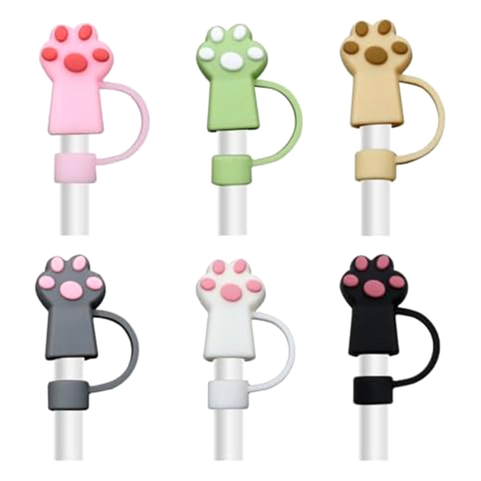 Straw cap 6PCS Cute Straw Cover Toppers for 10mm Straw,Silicone Straw Tips Lid Compatible with for Stanley,Cats Paws Straw Stopper