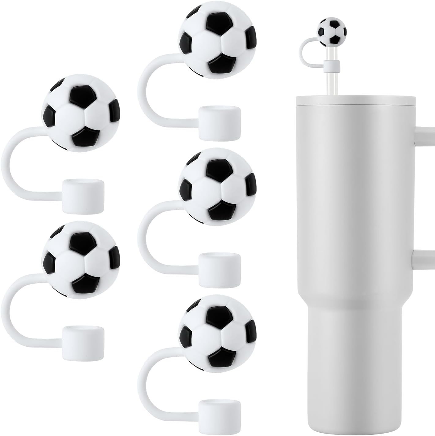 5Pcs Soccer Ball Straw Cover Caps for Stanley, Silicone Straw Tip Toppers for 10
