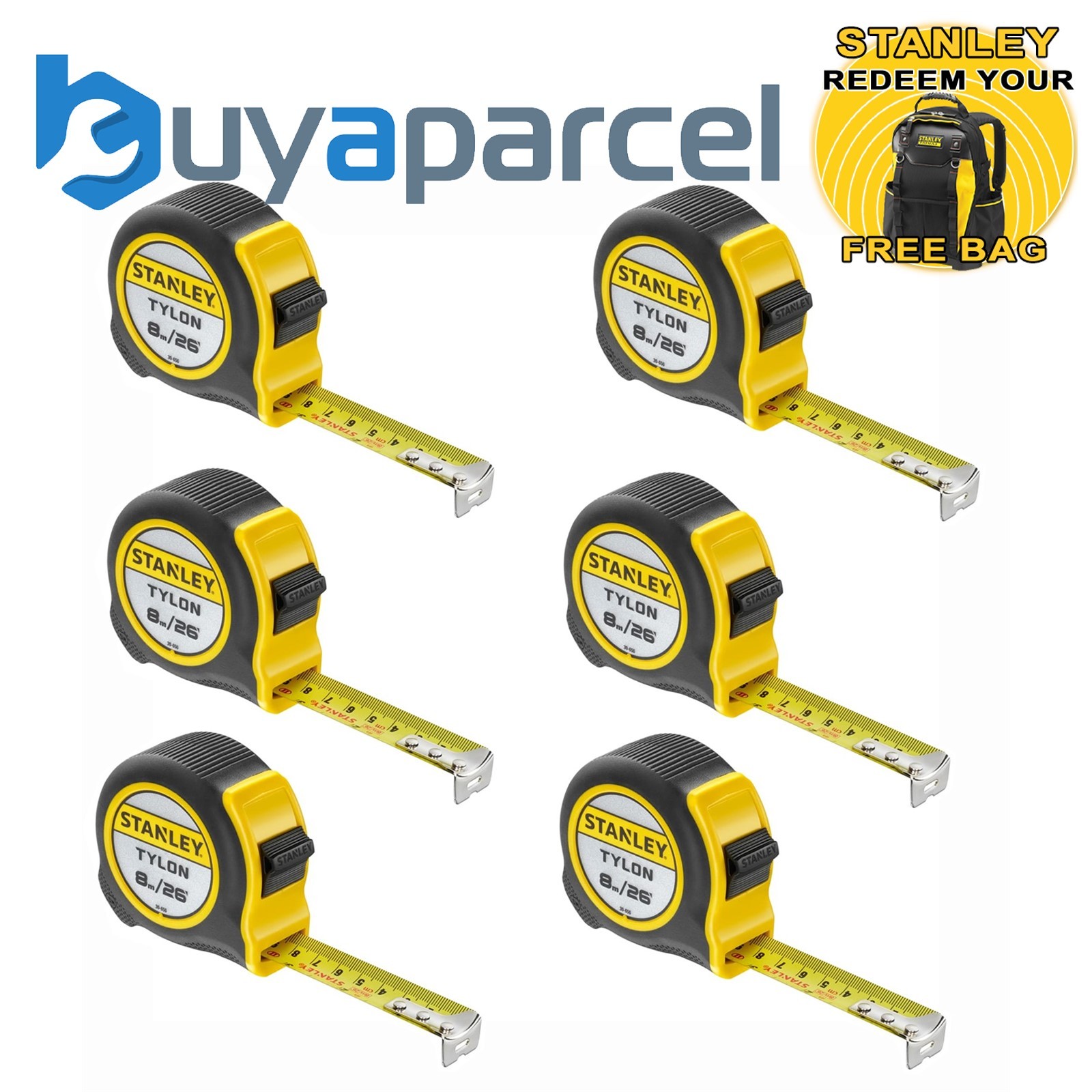 Stanley 8m Tape Measure Bi-Material Tylon Blade 26ft STA030656 6 PACK 0-30-656
