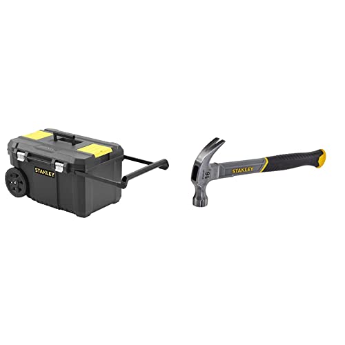 STANLEY Rolling Toolbox Chest with Heavy Duty Metal Latch, 2 Lid Organisers for Small Parts, Portable Tote Tray for Tools, STST1-80150 & STHT0-51309 16oz Fiberglass Curved Claw Hammer, 450g