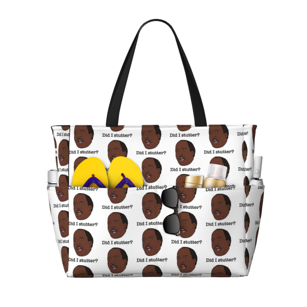 (Did Stanley Stutter_6659) Beach Bag for Women Large Capacity Waterproof Sandproof Tote with 7 Pockets Pool Zipper Bags for Travel Vacation Gym Campin