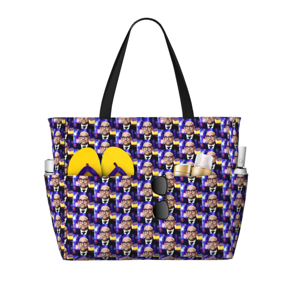 (Stanley Tucci Portrait_5554) Beach Bag for Women Large Capacity Waterproof Sandproof Tote with 7 Pockets Pool Zipper Bags for Travel Vacation Gym Cam