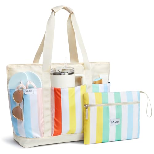 G4Free 35/50L Foldable Beach Bag with Zipper Pockets, Waterproof Tote Pool Handbags for Women, Compatible with Stanley Cup, Weekender, Travel, Holiday