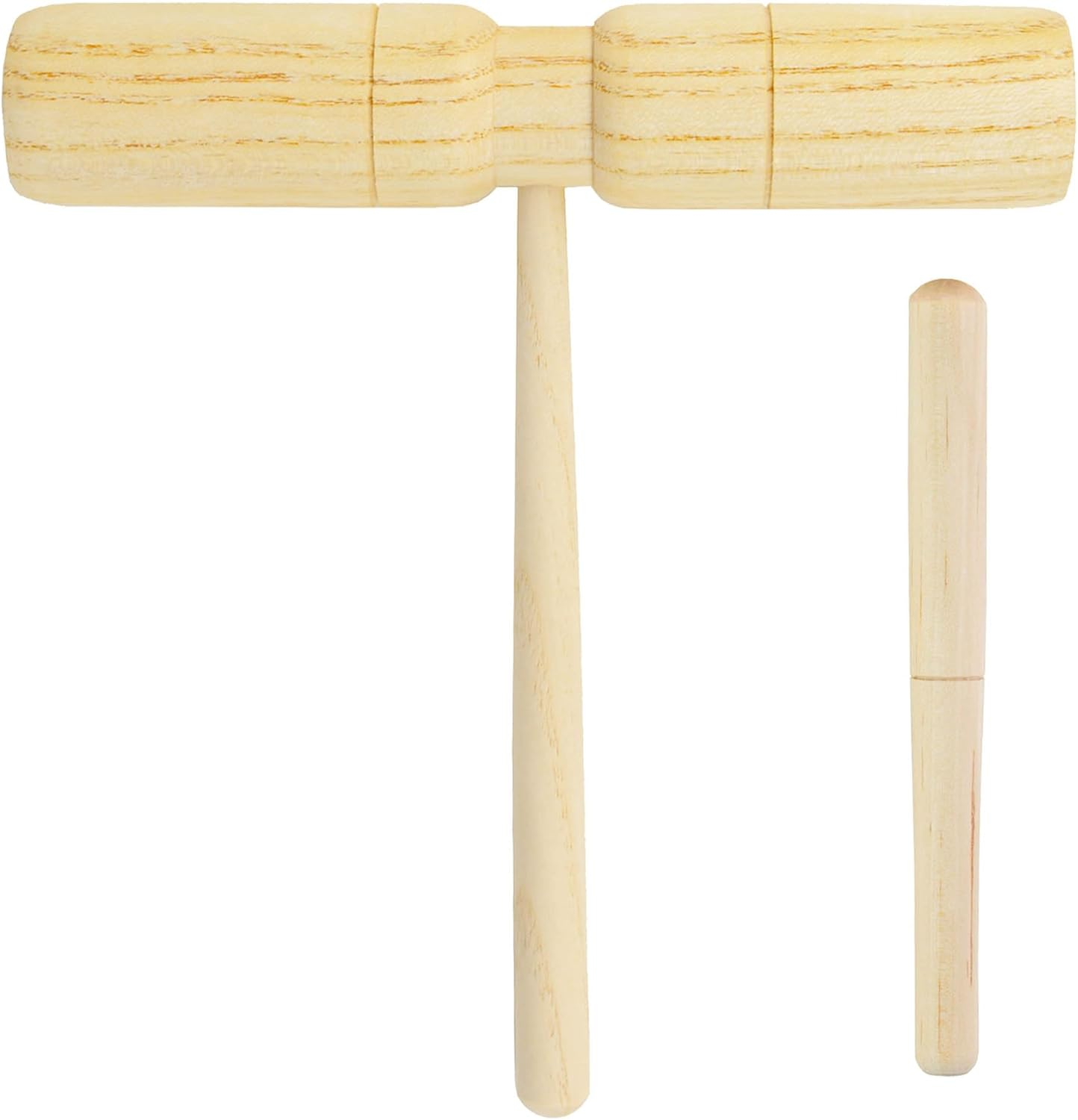 A-Star T Bar Double Two Tone Wood Block with Wooden Beater, Percussion Rhythm Block