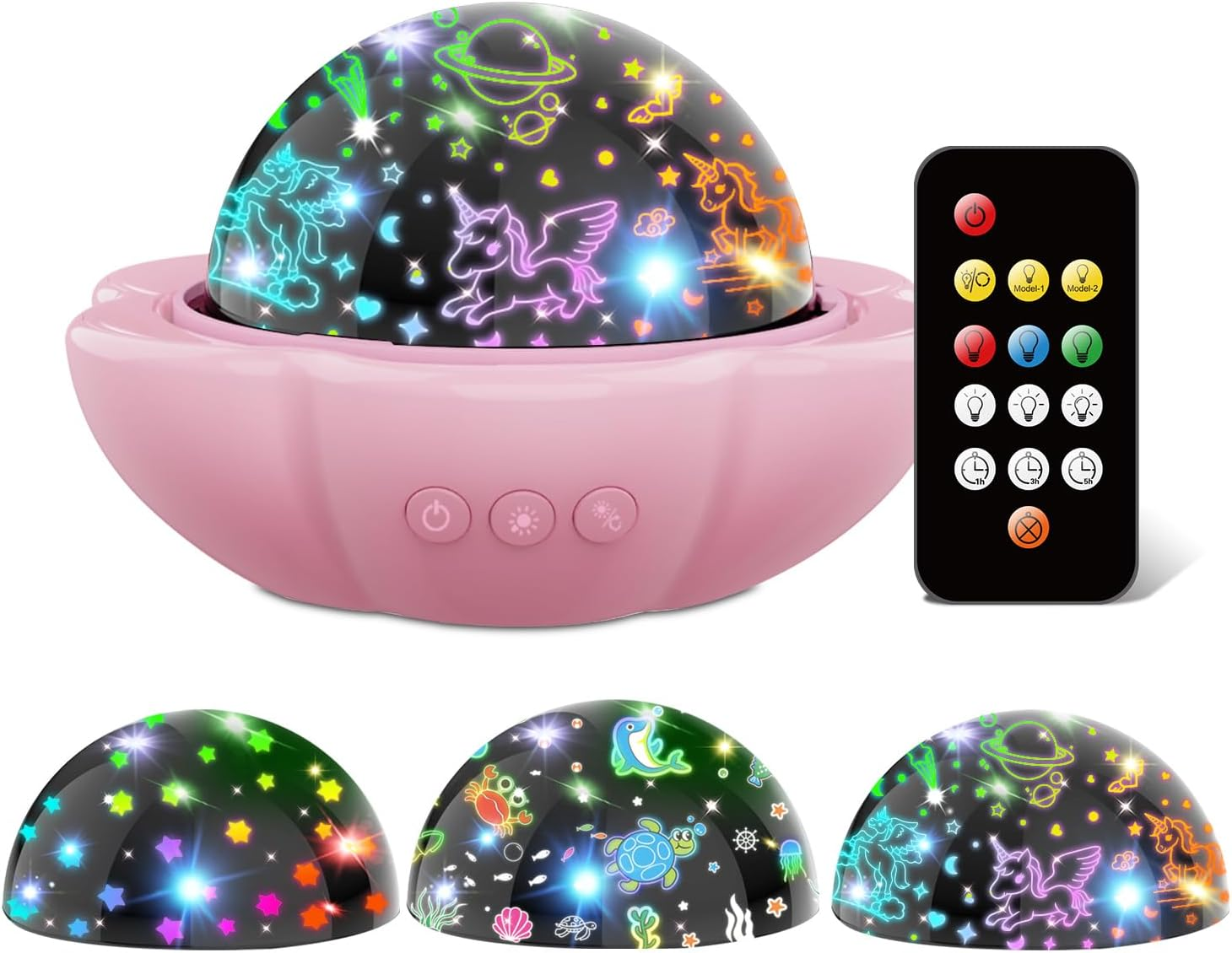 DQMOON Girls Gifts for 3-9 Year Old Kids, Star Projector Night Light for Kids with Remote Control, Timer Rotation Room Decoration Lamp Birthday Gifts Xmas Stocking Fillers for Boys Girls Adults