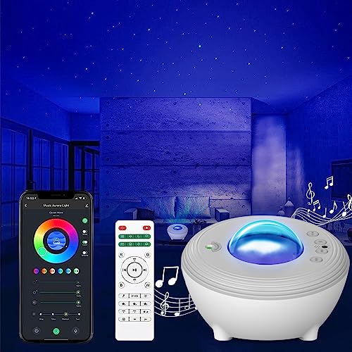 YunLone Aurora Starry Light Projector Smart Galaxy Star Music Planetarium Projector Night Light Starlight Projector with Remote/Voice Control, Bluetooth Music, Sound Machine for Kids and Adult-Gray