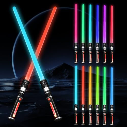 2-Pack Star Wars Lightsaber, Light Up Sword with 7-Color Changing & Sound Effects, Telescopic Lightsaber Toy for Kids Adults, LED Light Saber for Cosplay & Party Decor