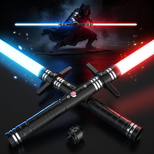Lightsaber Star Wars, Heavy Dueling Light Saber Upgraded RGB 24 Colors, Rechargeable Lightsaber Metal Hilt, 4 Modes Laser Sword Toy with Sound Effects for Kids Adults Cosplay Party Gifts (Cross 2PC)