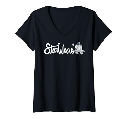 Womens Star Wars R2-D2 Cursive Text V-Neck T-Shirt