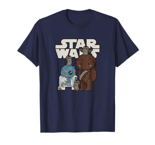 Star Wars Last Jedi R2-D2 Porgs Chewie Cutie Cartoon T-Shirt