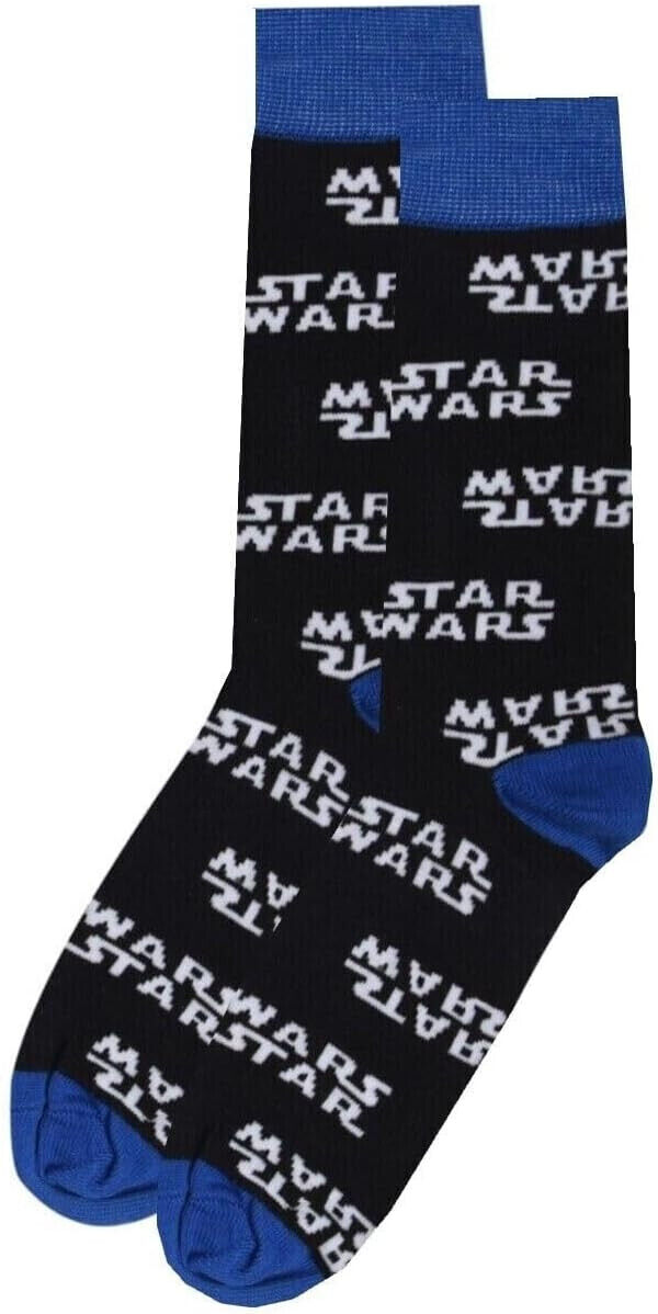 STAR WARS | Mens Tiled Logo Tipped Black Blue Socks | One Size UK 6-11 EU 40-46
