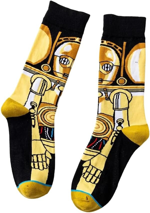 C-3PO | Mens Clone Star Wars Gold Black Robot Socks | One Size UK 6-11 EU 40-46