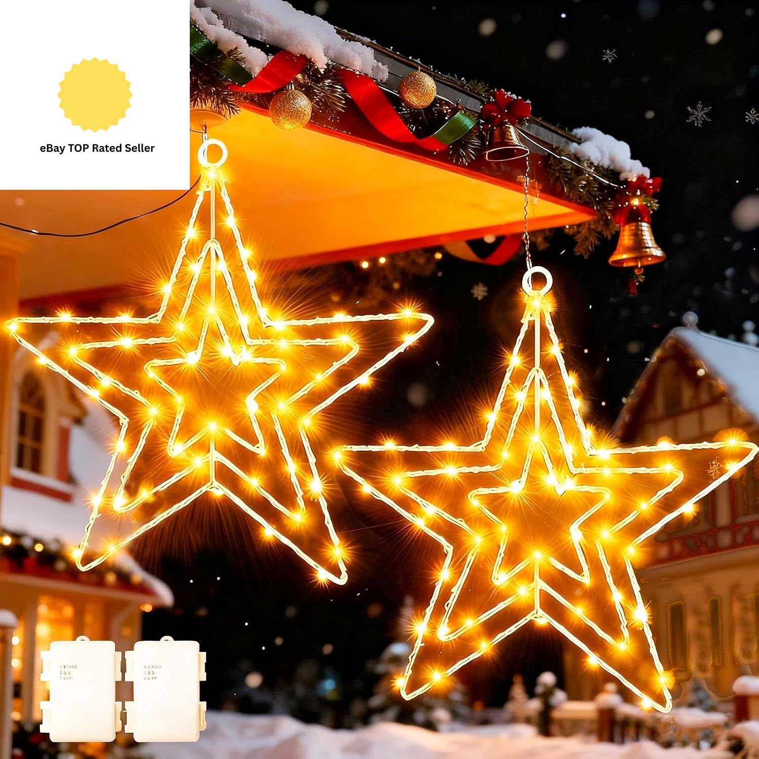 Star Christmas Window Lights, Battery-Operated Indoor Decor with Warm Light for All Celebrations, Timer Function & Memory for Easy Operation, Hanging