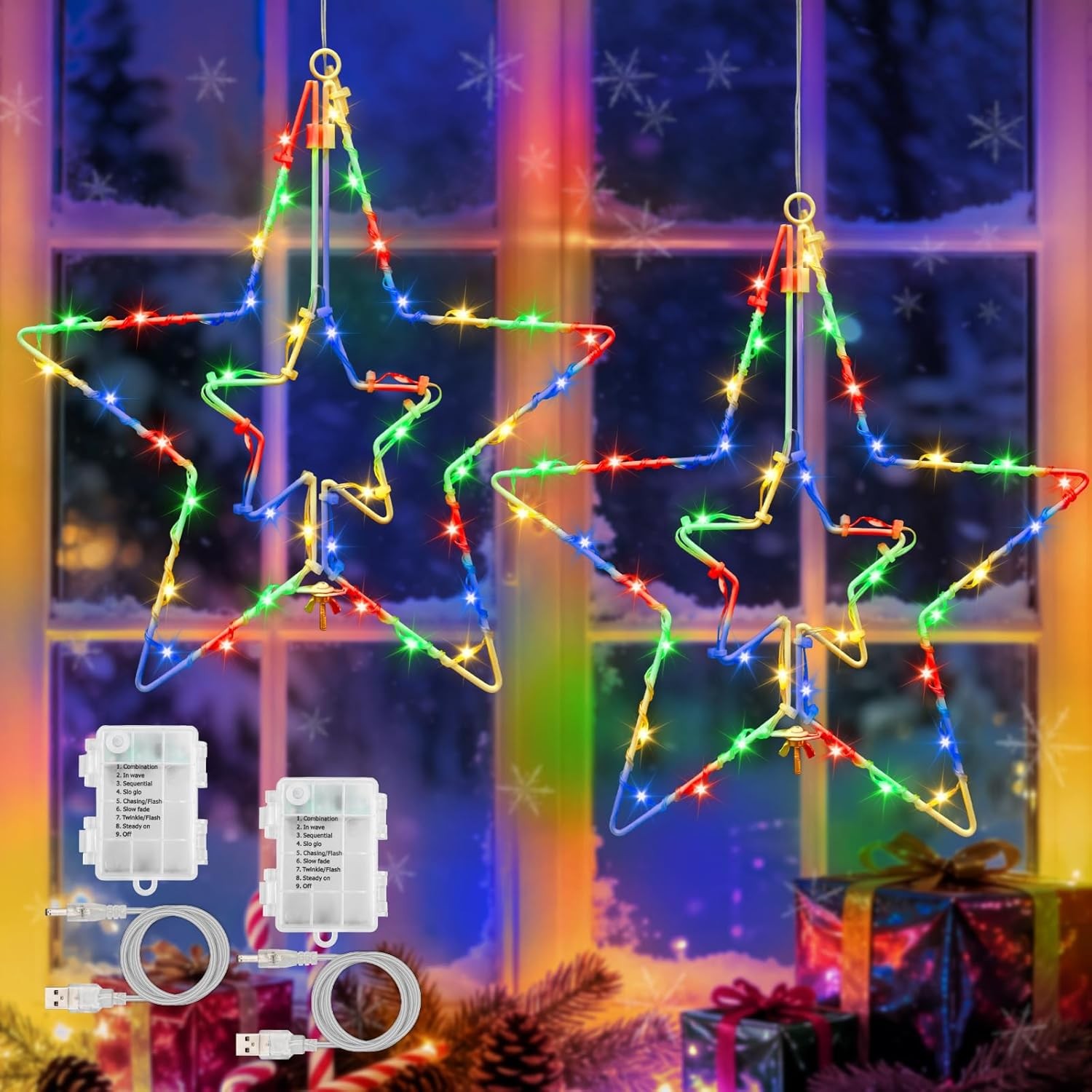 Gcstnn Christmas Star Window Lights, 2M 48 Stars 2M, Multicoloured