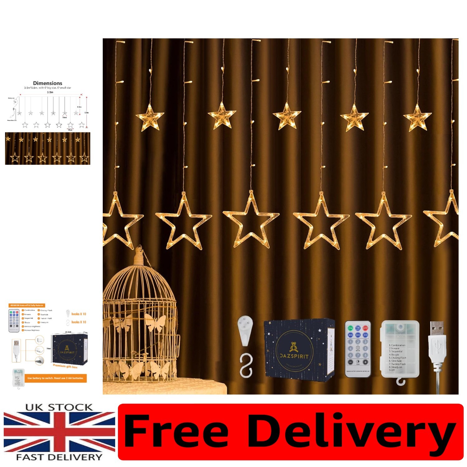 Christmas Star Window Fairy String Lights USB & Battery Powered String2723