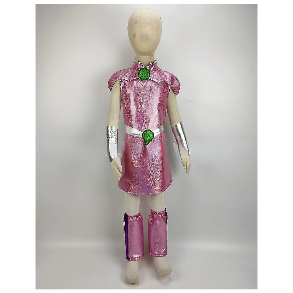 (S(Height 100-110cm)) Kids Anime Teen Titans Starfire Cosplay Costume Girls Dress Superhero Bodysuit Children Cosplay Halloween Party Props