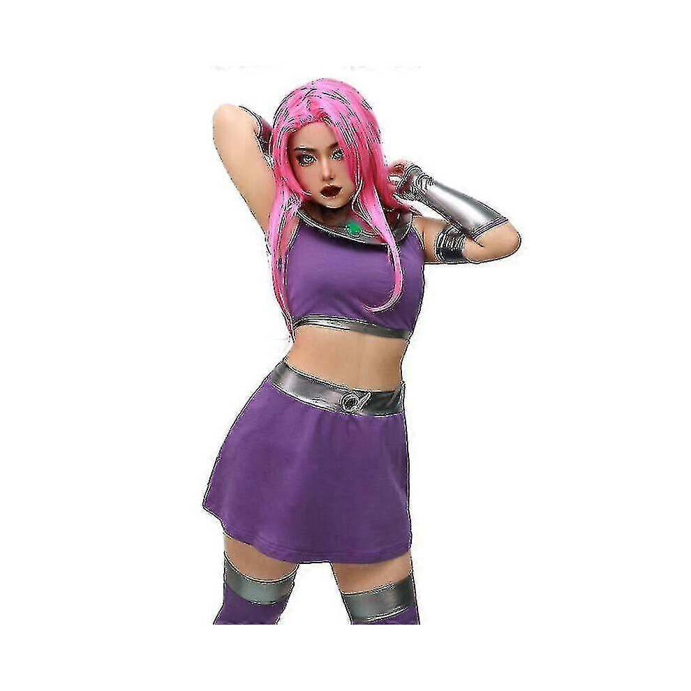 (Titan Starfire complete set, XL) Halloween Teen Titans Raven Starfire Cosplay Costume, Anime Cosplay Outfit, Sweet Style Role Play Suit