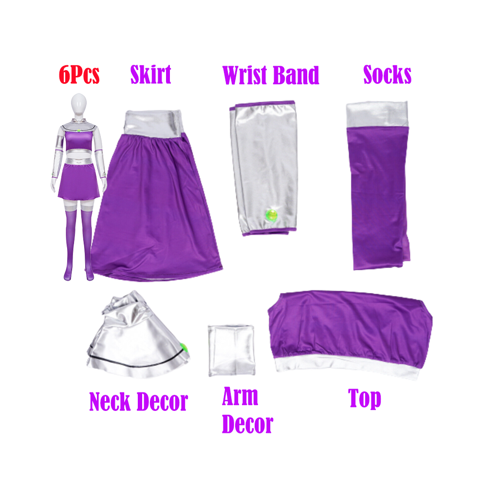 Varuotu Halloween Starfire Costume 6 Pcs Purple Koriand'R Princess Halloween Starfire Cosplay Outfit Women Party Masquerade Prop
