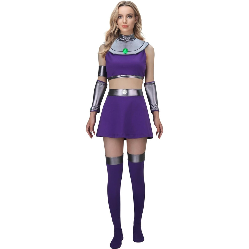 Starfire Costume Princess Koriand'r Costume Halloween Cosplay Costumes for Women Anime Outfit Set, Purple, Medium