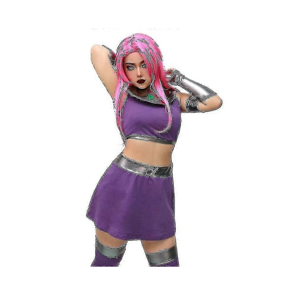 Pigmiss Starfire Costume Halloween Cosplay Princess Outfit Koriandr Sexy Dress Costume Set for Women Purple (S)