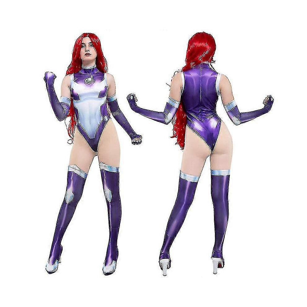 EJWCIG Starfire Costume Princess Women Raven Halloween Purple Bodysuit Outfit Masquerade Party Anime Cosplay Prop (M)