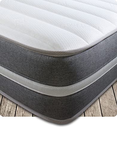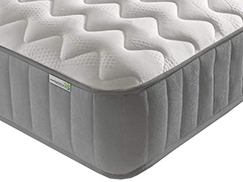 Starlight Beds - 5ft Mattress. Memory Foam Mattress. Memory Foam Sprung Mattress (Kingsize Mattress) (5ft x 6ft6), white/grey