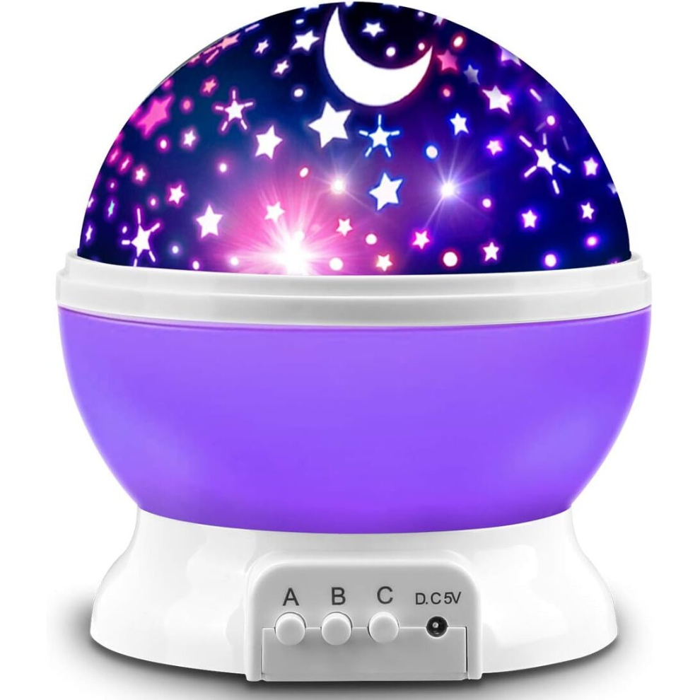 (Purple) Automatic Rotating Starry Sky Projection Lamp Star Moon Colorful Diamond Starlight Projector USB LED Night Light