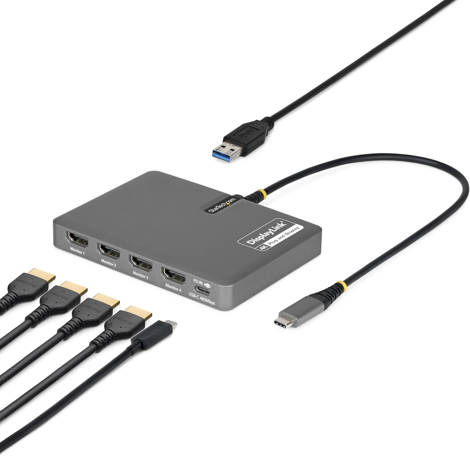 StarTech USB C to Quad HDMI Adapter USB-C to 4x HDMI Monitor Converter for Wi...