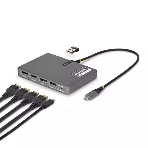 StarTech USB-C to Quad-Monitor Workstation Adapter 4K 60Hz DisplayPort 140W P...
