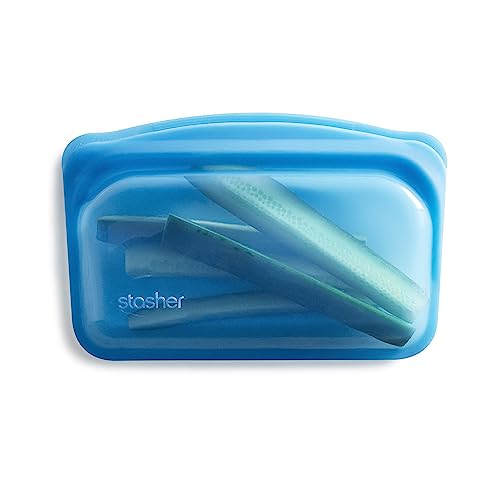 Stasher Snack Bag (Blueberry) | Reusable Freezer Bags For Travel and Food Storage, Silicone Zip Loc Bag | 21cm x 14cm x 1.3cm / 290ml