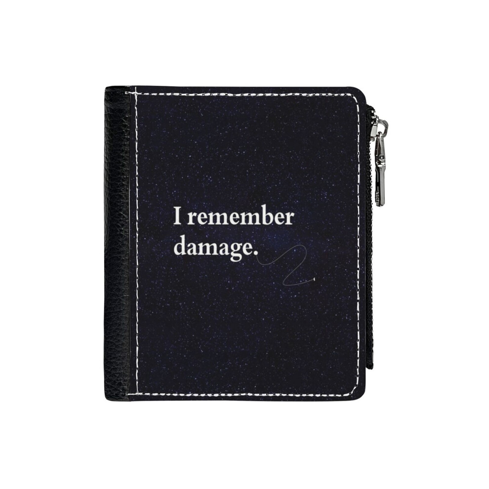 (Station Eleven I Remember Damage Spacefield_4698) Men's Women PU Leather Wallets Compact Bifold with Zipper & Multiple Card Coins Slots Black Stylish